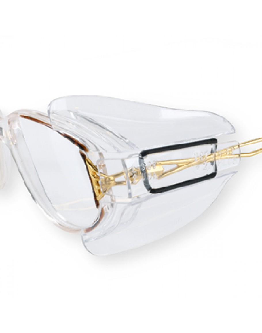 Proteção contra radiações ópticas e influências mecânicas - Policarbonato - Para quase todo o tipo de hastes emmetal ou plástico - Fixação com fita de borracha - Suporte da haste: 12 mm - Suporte da ocular: 7 mm - Altura máxima da armação: 40 mm