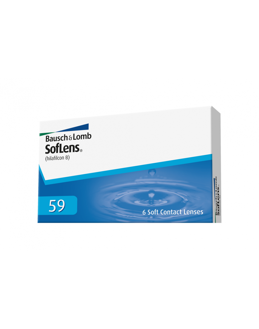 Lente de contacto de hidrogel com 59% de água e baixa aderência de depósitos.